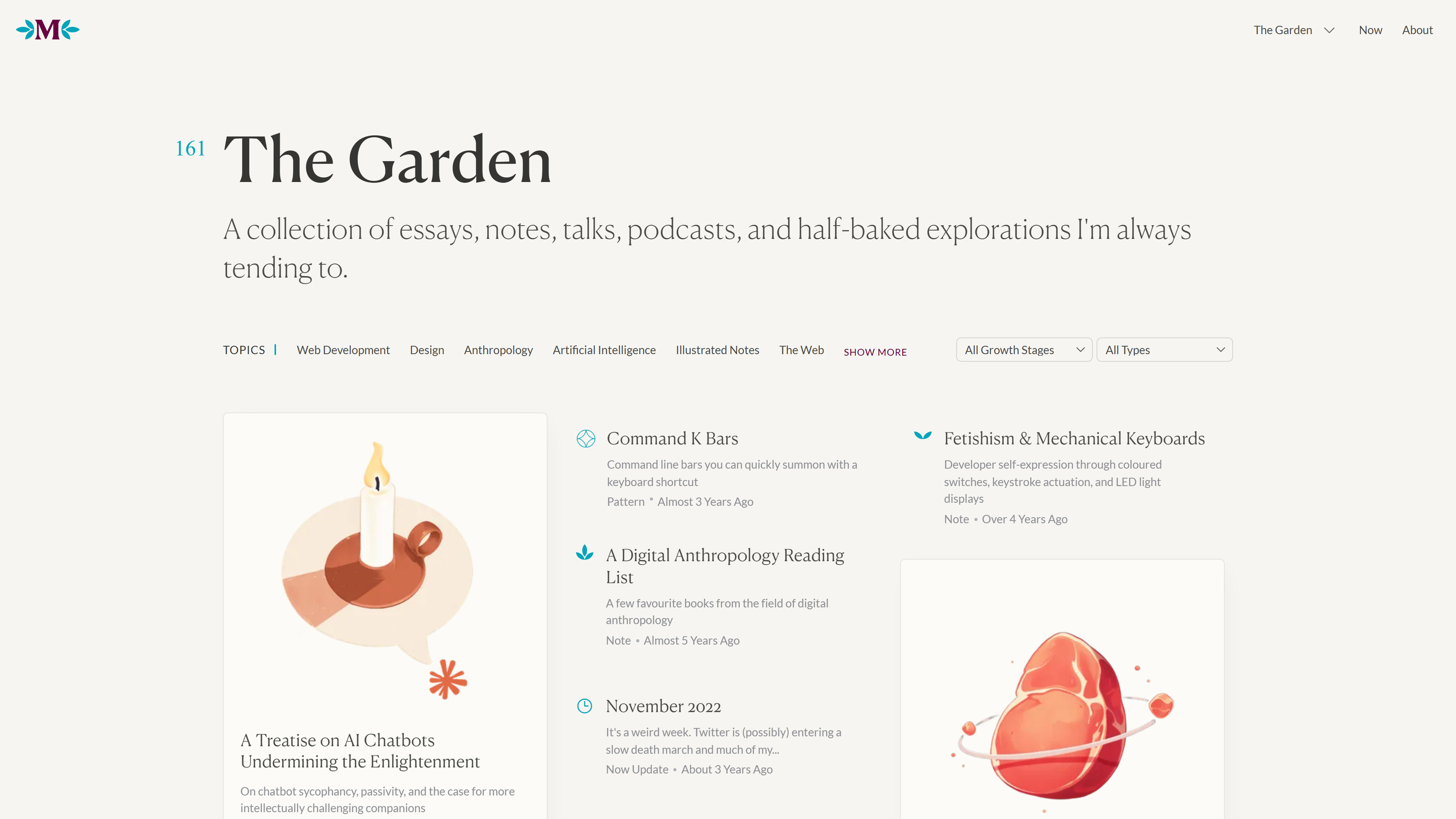 After analyzing 100+ public digital gardens for their structure and navigation patterns, I’ve selected four dominant types.