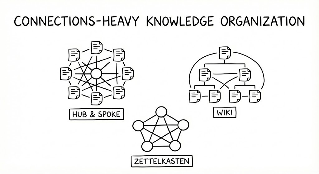 Central “Map of Content” pages branch to specific notes.