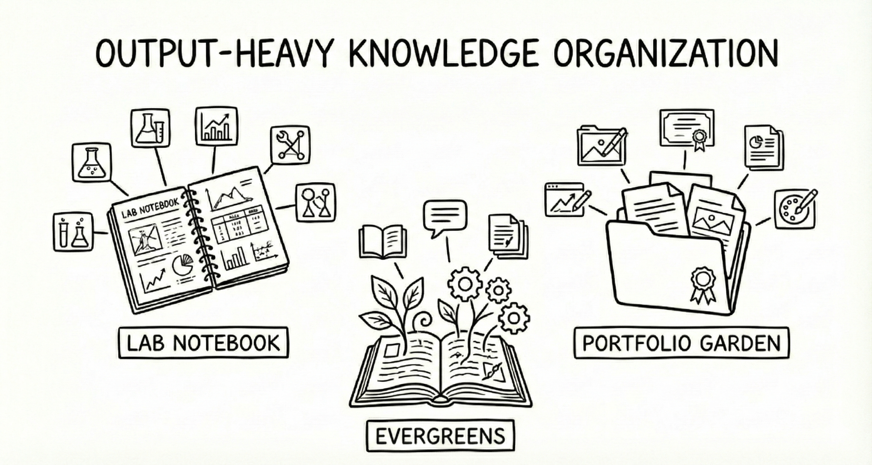 Lab notebooks catch the messy middle; Evergreens capture the enduring ideas; Portfolio gardens tell the public story.